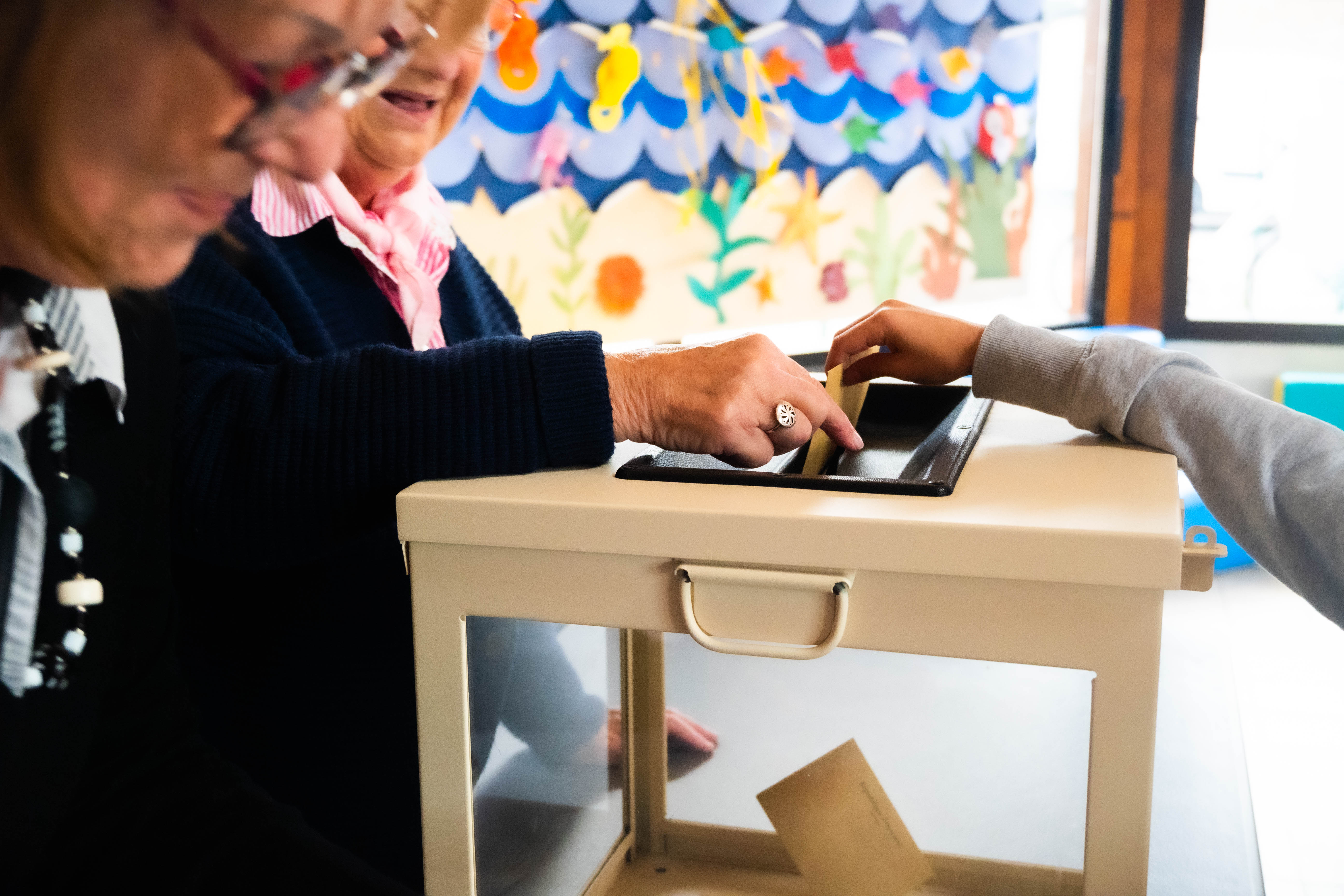 bulletins de vote, urnes, isoloirs, dépouillement et proclamation des résultats en mairie.